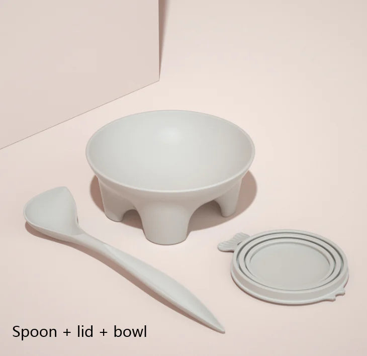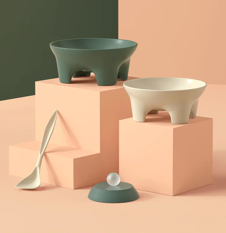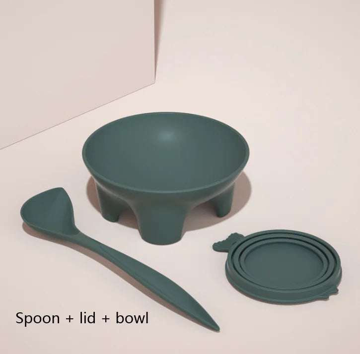 Incluye cuchara con mango largo, pez burbuja enlatado y cuenco, ofreciendo una experiencia completa de alimentación. Disponible en gris y verde, con dos tamaños para adaptarse a las necesidades de tu mascota. Su diseño protege el cuello y favorece una postura cómoda al comer.